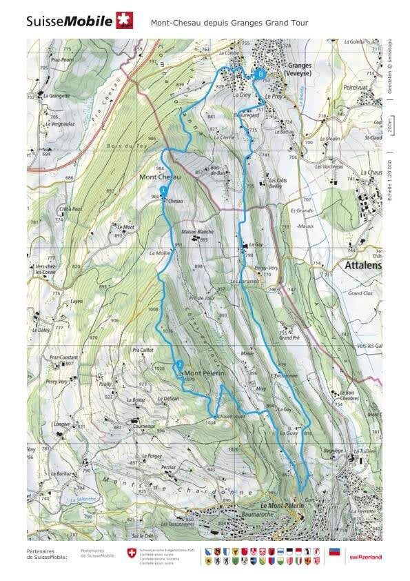 Deux depuis l'arrêt du funiculaire du Mont-Pèlerin et deux autres depuis Granges (pour ceux qui viennent depuis côté Fribourg)